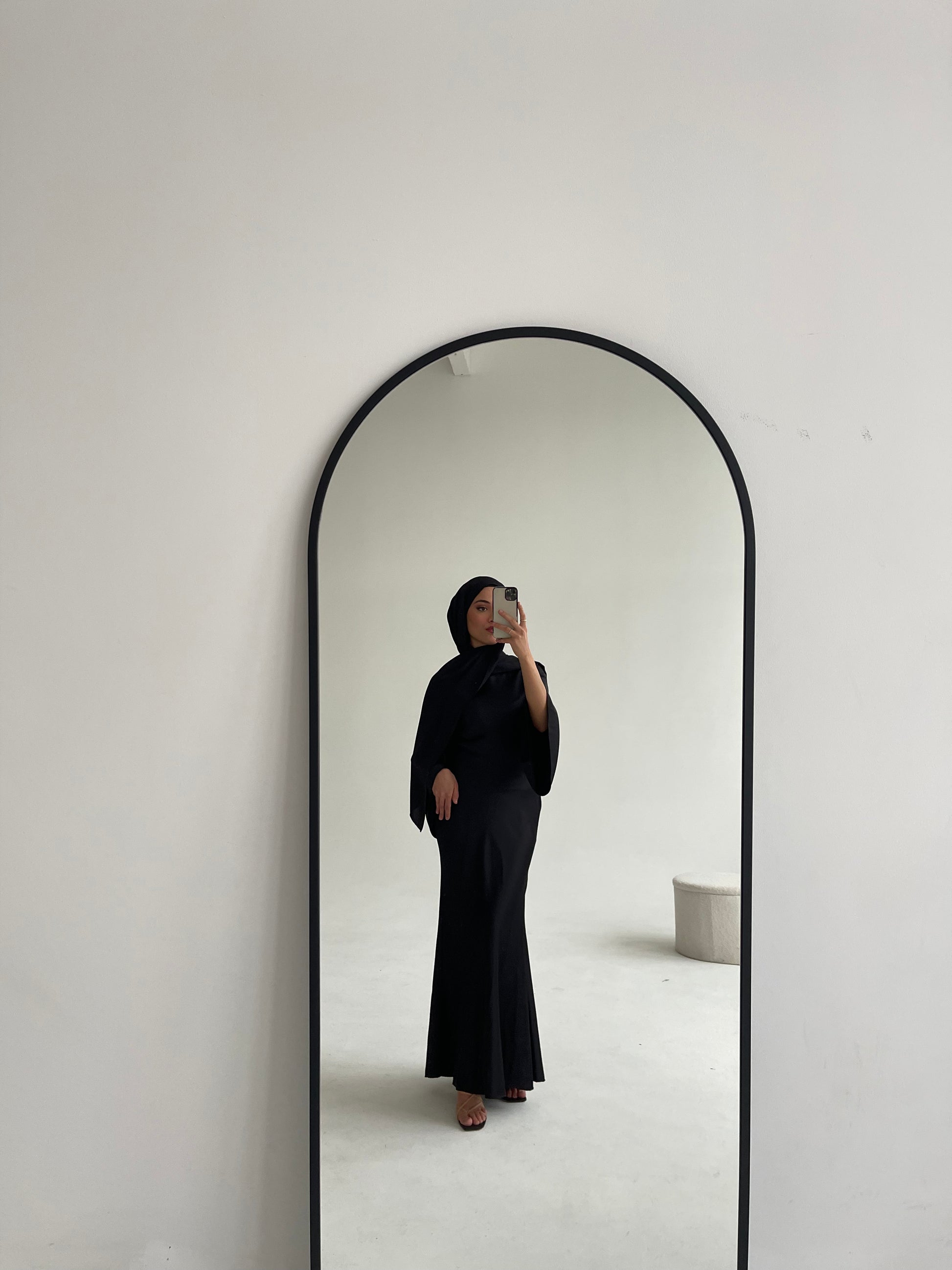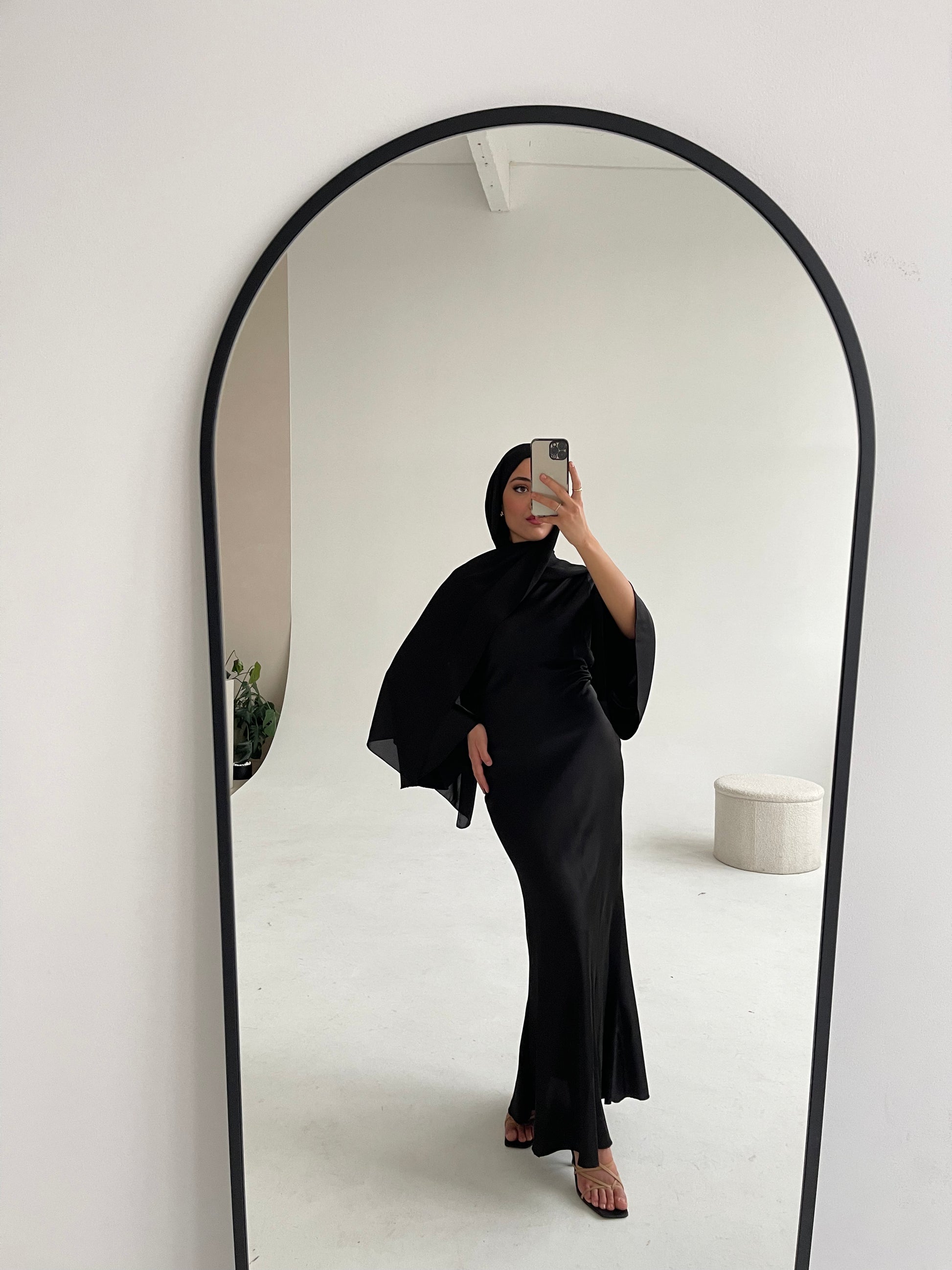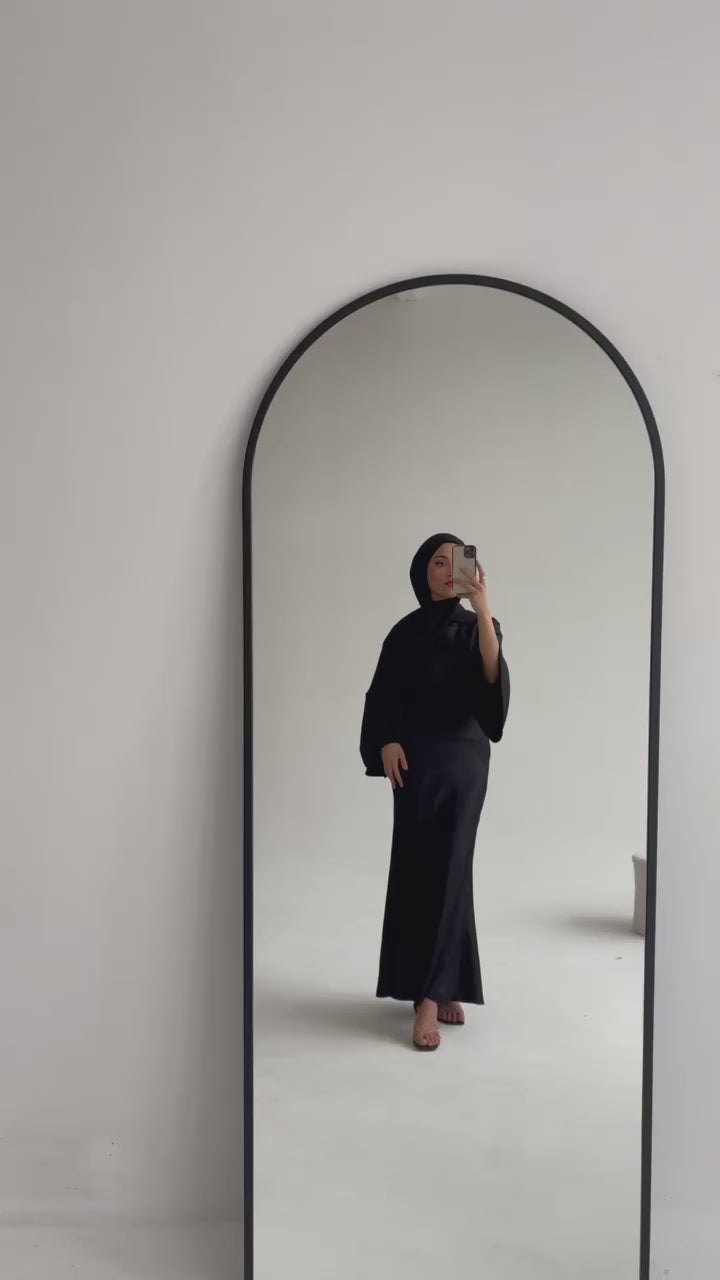 Maxi Satinkleid Mermaid in Schwarz