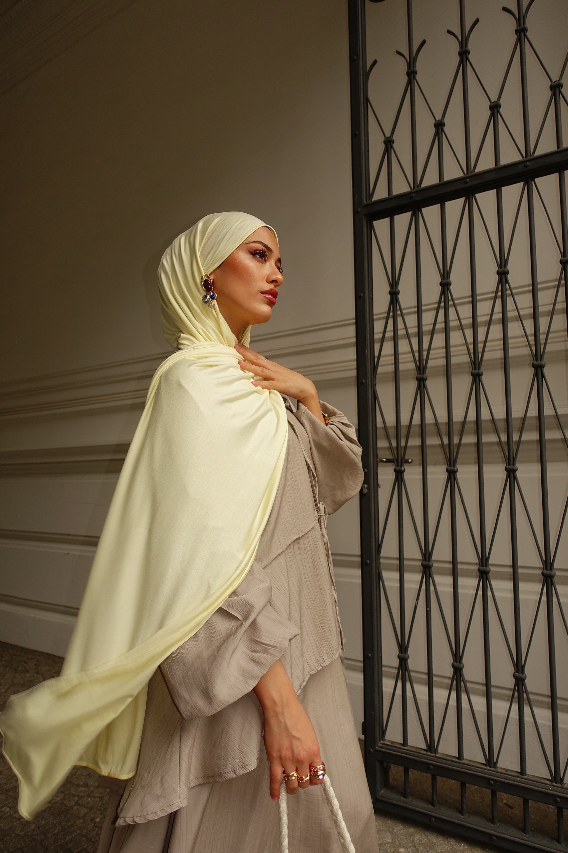 Hergestellt aus 90 % Viskose und 10 % Lycra schmiegen sich diese Hijabs weich an und bleiben den ganzen Tag in Form – ganz ohne Verrutschen.