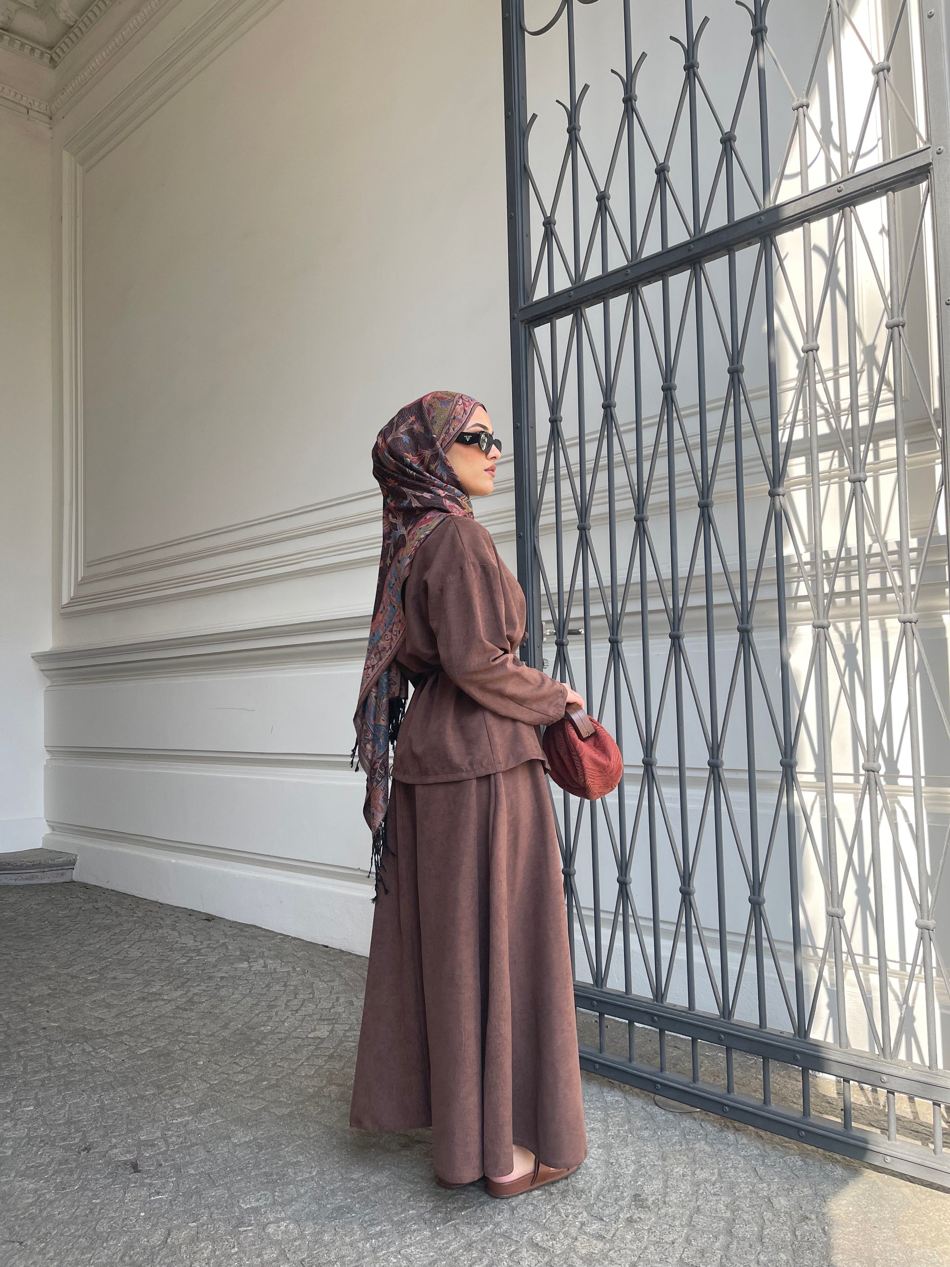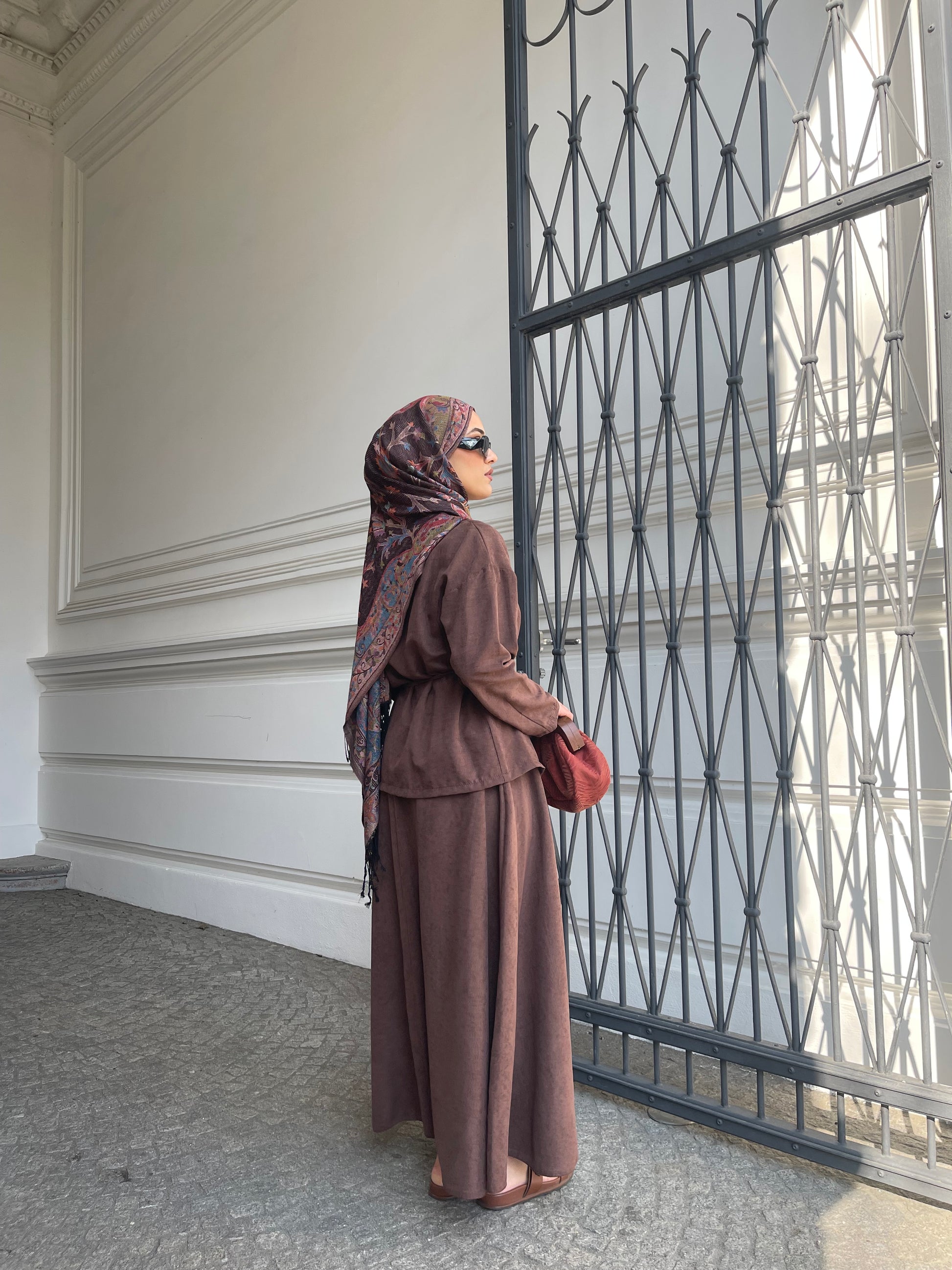 Das Oberteil hat eine Länge von ca. 68 cm, während der Rock ca. 100 cm lang ist. Durch den angenehmen Stoffmix aus 65% Viskose und 35% Polyester fühlt sich das Set weich auf der Haut an und bietet gleichzeitig eine gewisse Struktur für einen gepflegten Look.