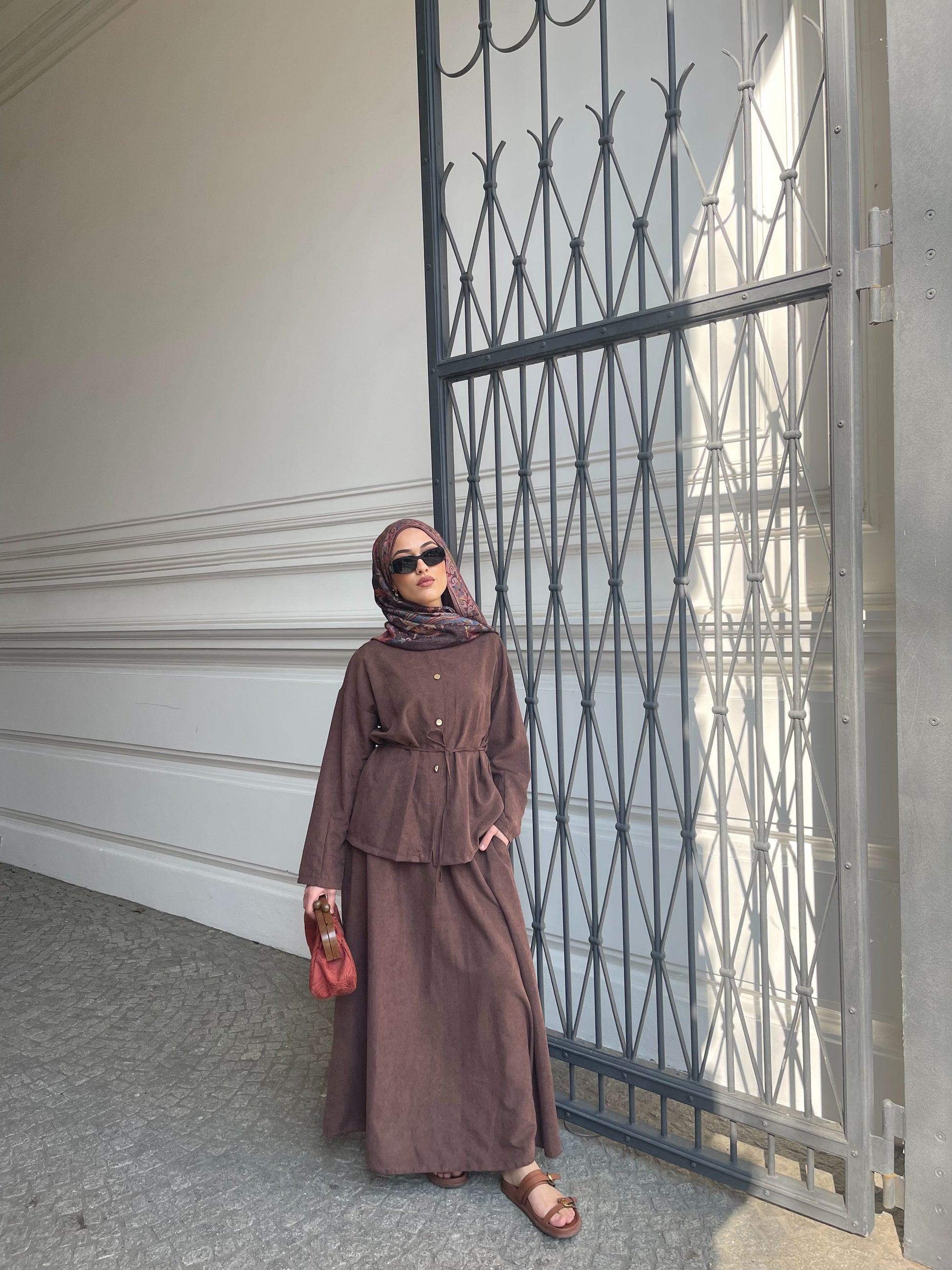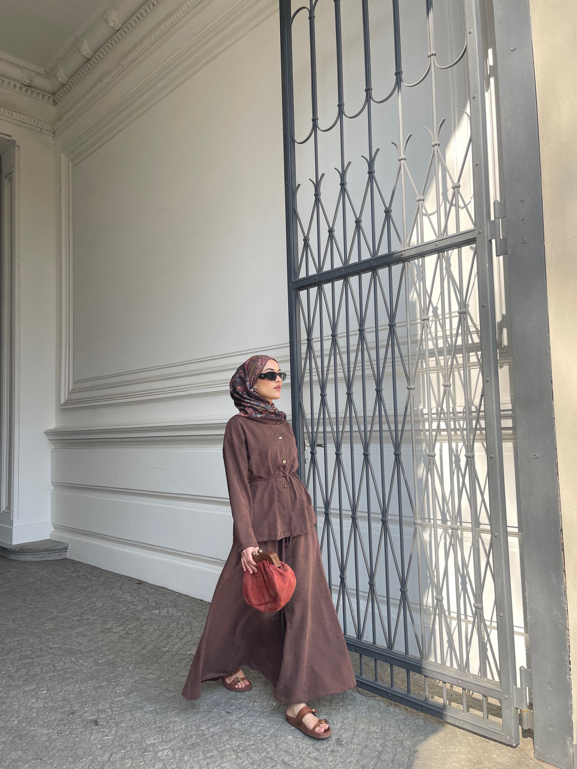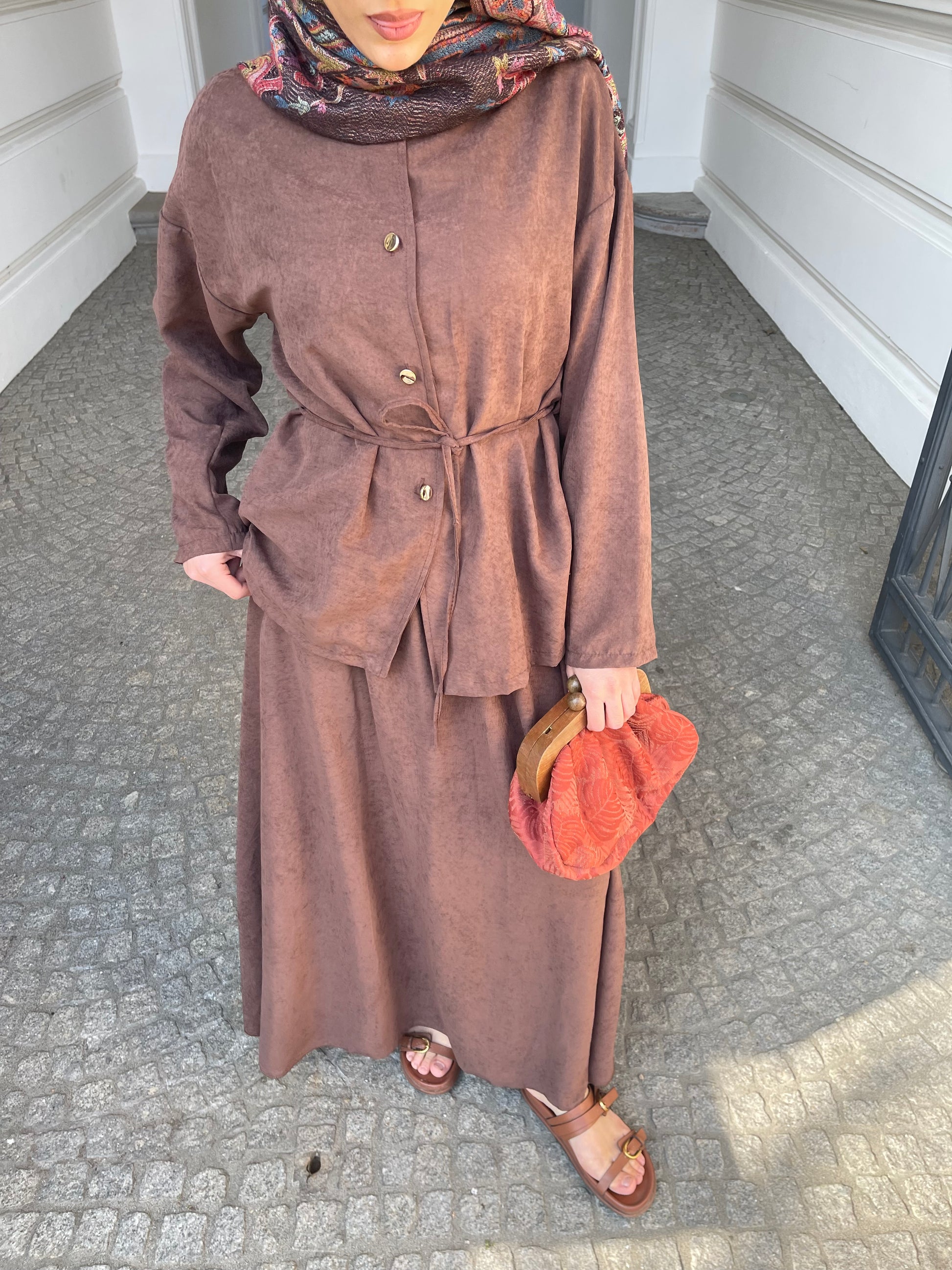 Entdecke unser elegantes Zweiteiler-Set, die perfekte Kombination aus Stil, Komfort und Leichtigkeit. Das Set besteht aus einem locker geschnittenen Oberteil mit feinen Knopfdetails und einem fließenden Maxirock, der durch seine Weite für eine schöne Silhouette sorgt.