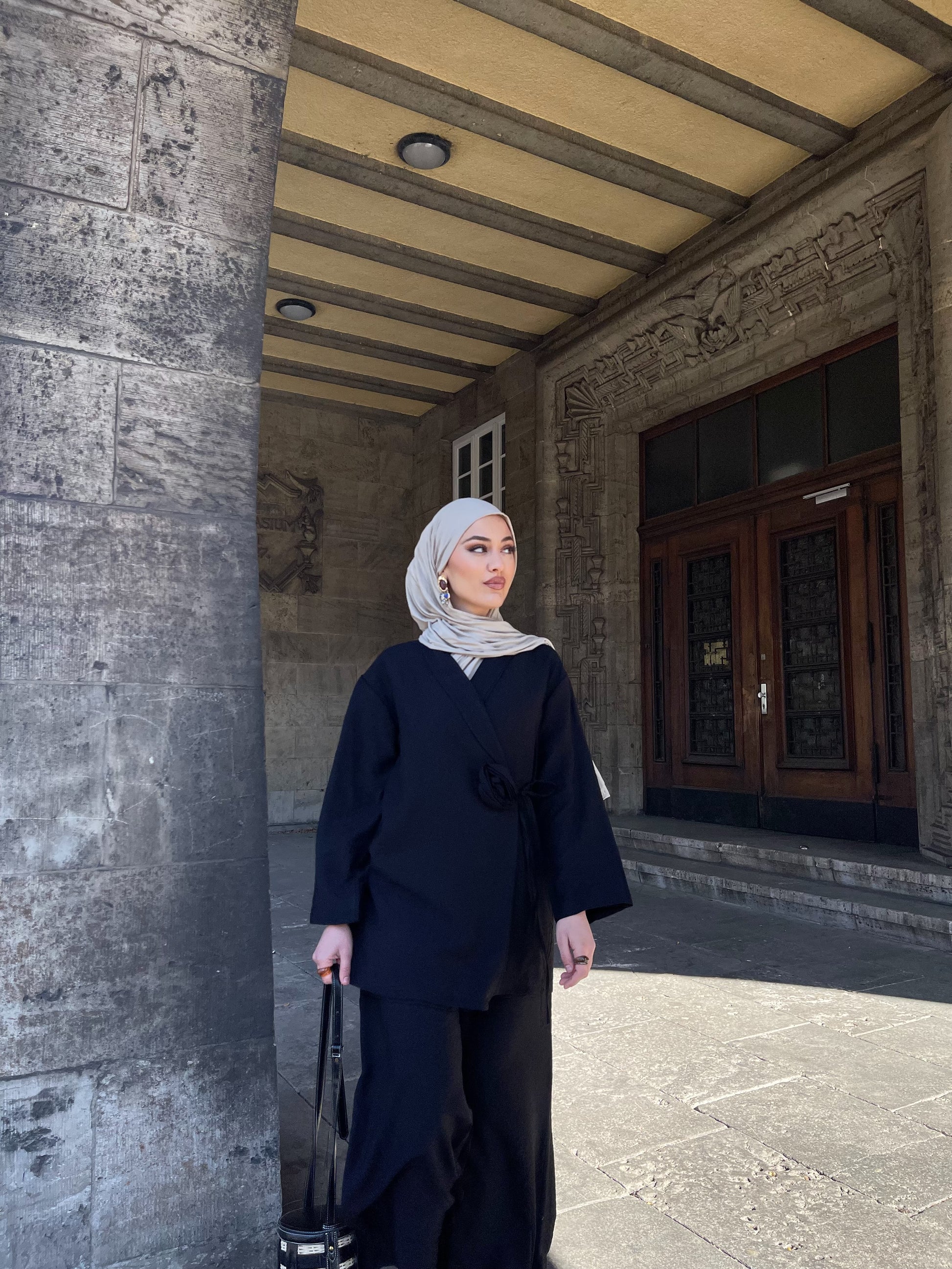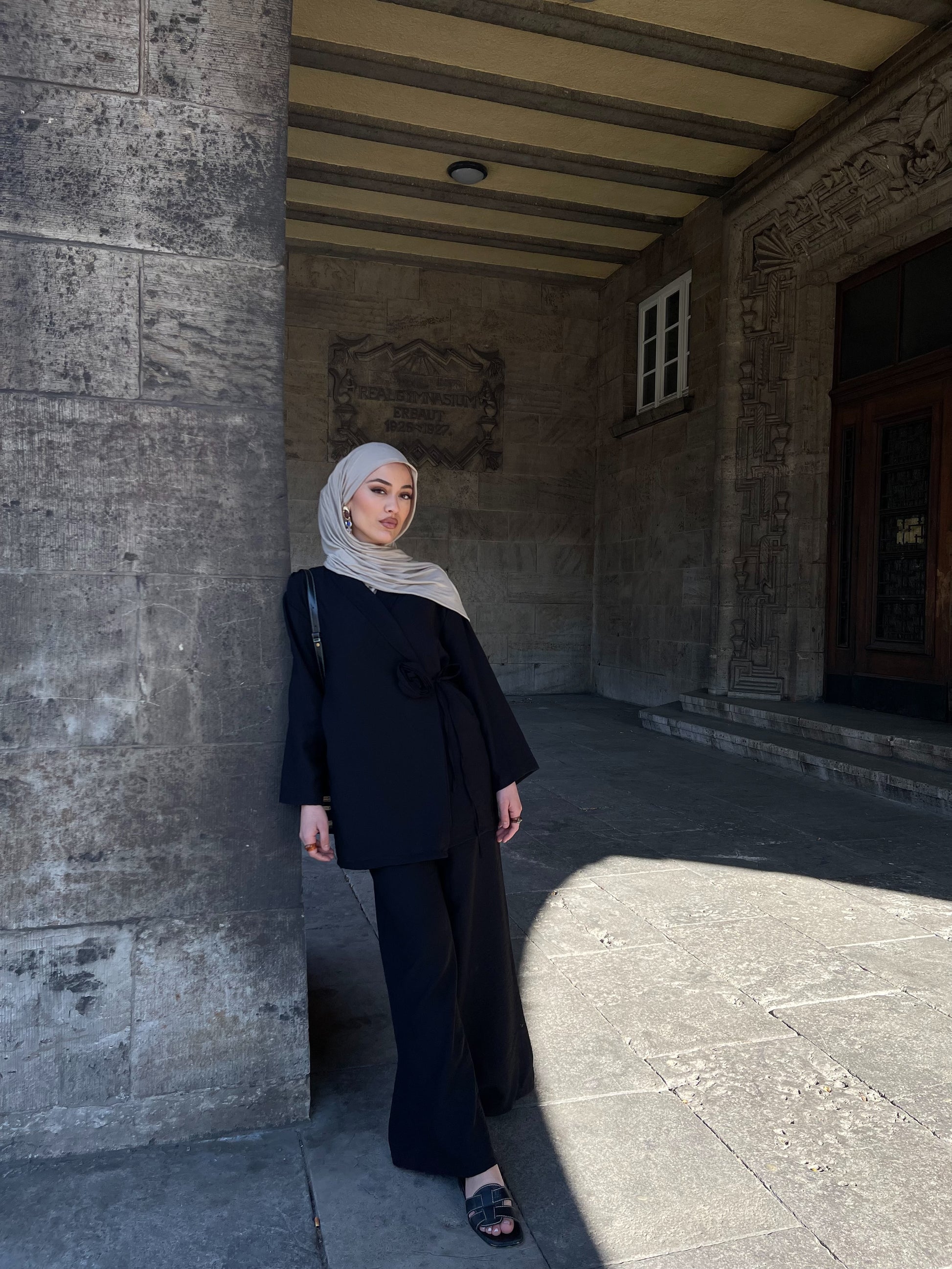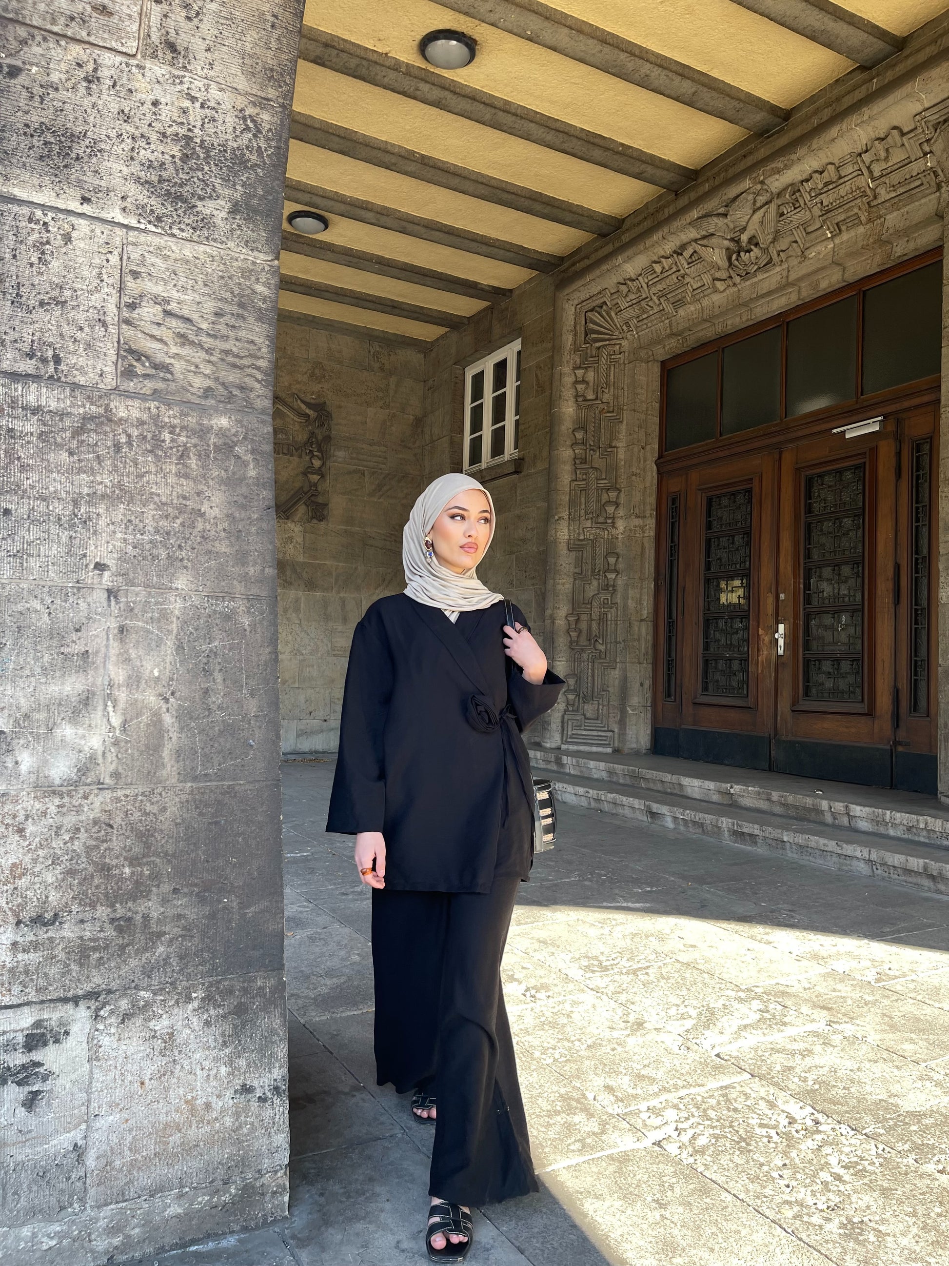 Der elastische Hosenbund sorgt für eine flexible Passform und macht das Set ideal tragbar für Größen 36–42. Die sanft fließende Stoffqualität in Kombination mit dem liebevollen Design verleiht dem Look eine elegante Leichtigkeit – perfekt für besondere Anlässe oder stilvolle Alltagsmomente.